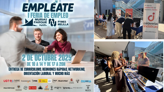 CALDERERÍAS INDÁLICAS participa en la I Feria de Empleo «EMPLÉATE», celebrada el 2 de octubre de 2025 en Murias Parque Melilla. Este evento, organizado por Murias Parque Melilla y Pymes Melilla, cuenta con la colaboración de la Ciudad Autónoma de Melilla y tiene como objetivo ser un punto de encuentro clave para empresas, instituciones y personas en búsqueda activa de empleo.